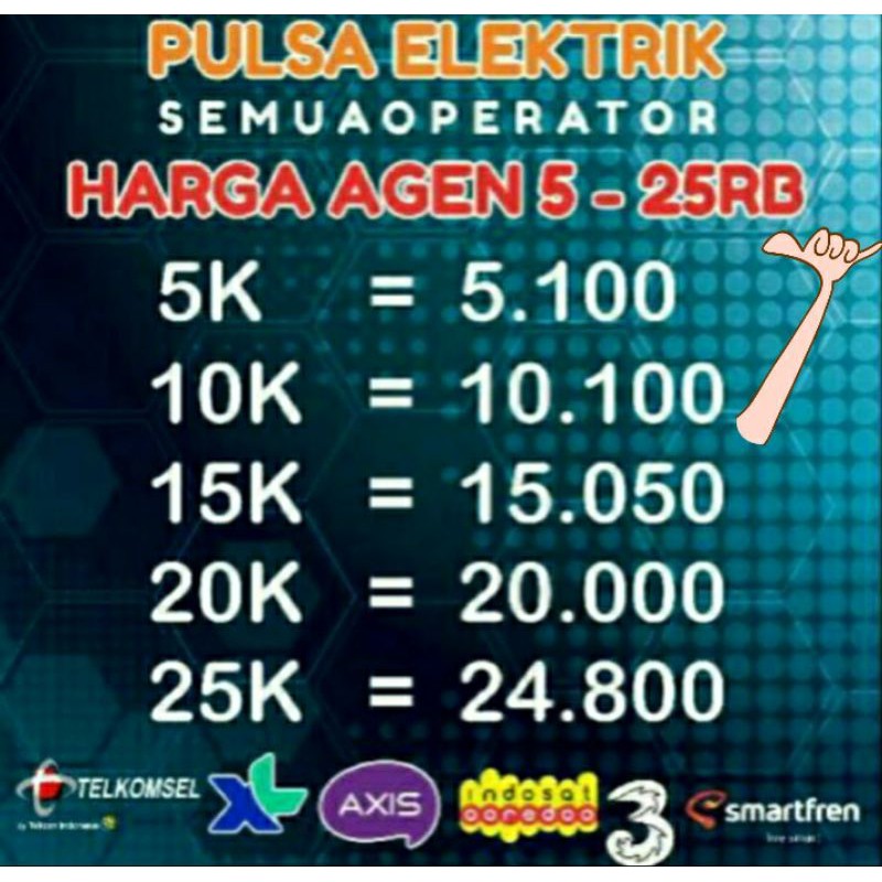 Beli pulsa online, kuota internet, token listrik dan banyak lagi semua tersedia disini. Harga pulsa elektrik all operator yang tercantum dibawah ini adalah harga update real time langsung dari server. Mungkin hal ini dikarenakan kamu bisa mendapatkan kualitas yang baik dari membeli paket internet telkomsel ini. Beli pulsa online dengan harga pulsa simpati murah juni 2021 di tokopedia. Pelajari juga cara transfer pulsa, cara cek nomor dan pinjam pulsa simpati menggunakan sms atau aplikasi mytelkomsel. Bagaimana untuk bisa mendapatkan harga pulsa telkomsel termurah? Daftar harga pulsa reguler telkomsel murah yagamicell page0 march 2021. Kami menyediakan sebuah alternatif baru cara mengisi pulsa secara online dan mobile application. Solusi tepat pembayaran pulsa, paket data, pln, voucher game, dan masih banyak lainnya. Dengan membeli pulsa telkomsel anda bisa menggunakannya untuk berselancar di media. Axis byu indosat smartfren telkomsel three xl tampilkan semua. Nikmati penawaran harga produk terbaik dari kami! Harga pulsa > telkomsel pulsa.
